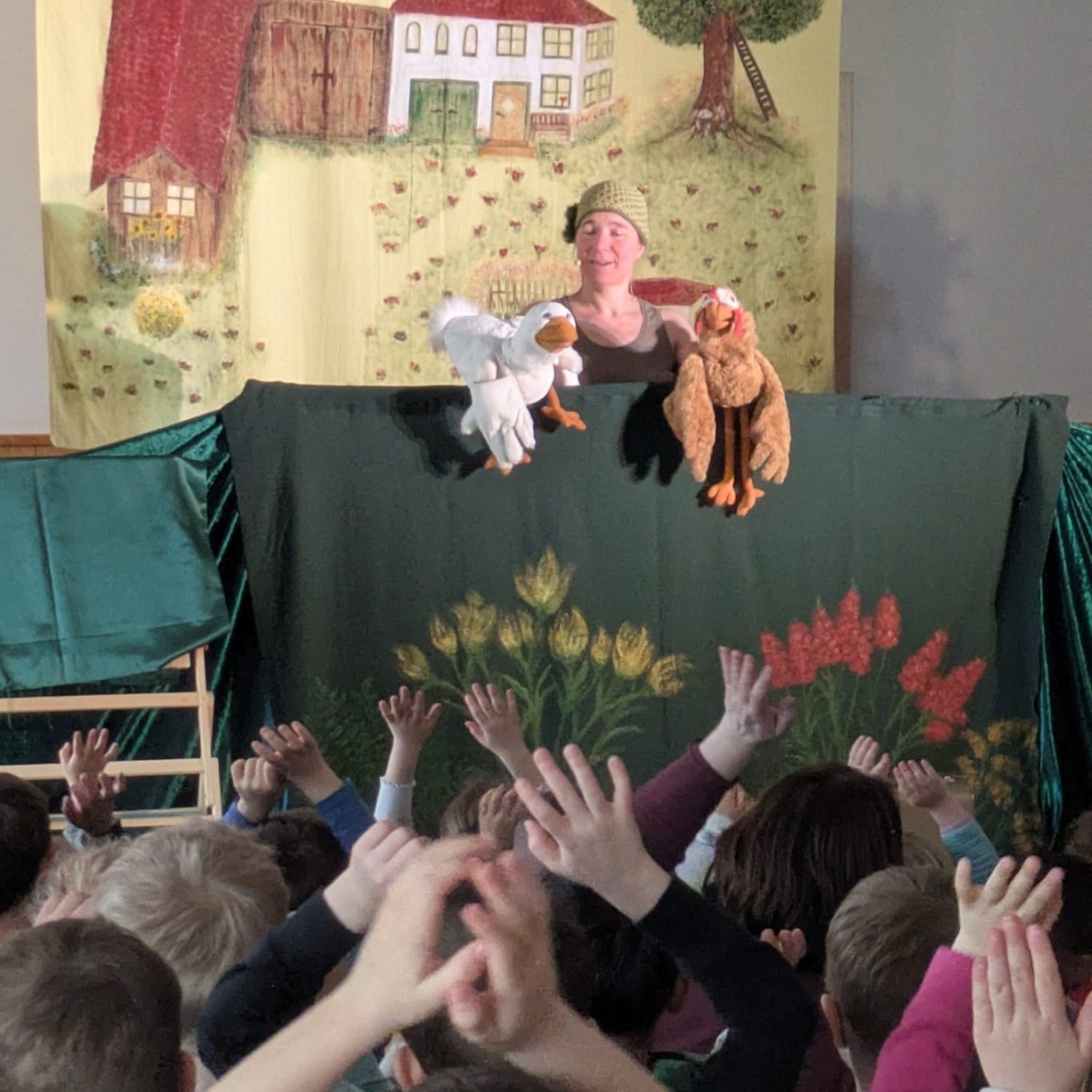 Während dem 50-minütigen Puppenspiel konnten die Kinder selber viel beitragen, durch singen und mitmachen.